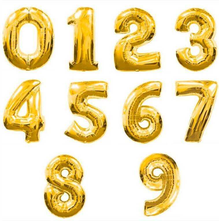 Шар Цифра, Золото, 102см , От 0 до 9, 1 шт.